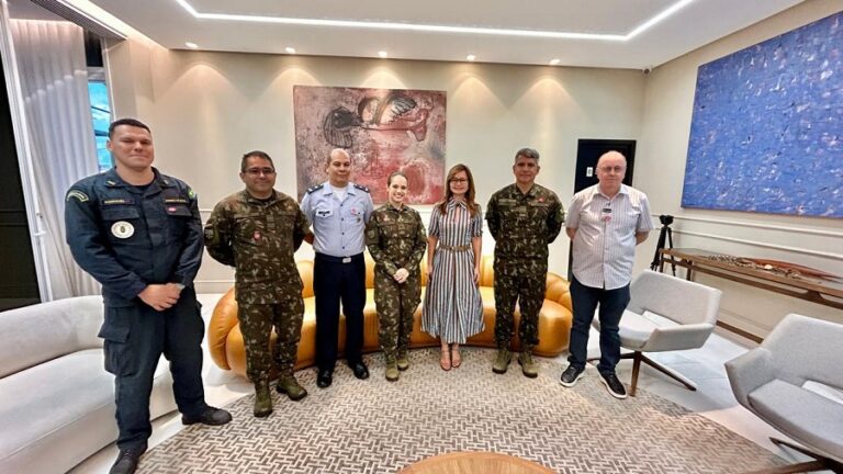 A comitiva das Forças Armadas foi recebida pela Secretária de Comunicação do Estado, Sra. Vera Oliveira, que elogiou a iniciativa e destacou a importância do trabalho integrado durante a COP 30, essencial no combate a desinformação.