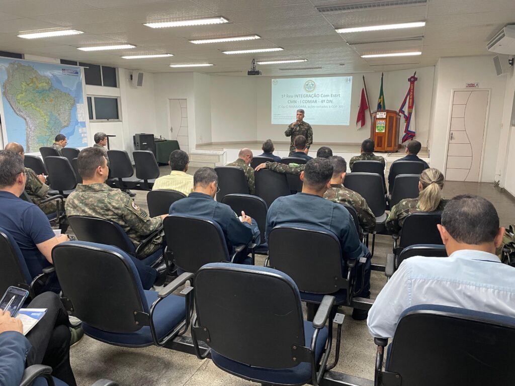 Belém (PA) – A Central de Comunicação Estratégica do Comando Militar do Norte realizou a 1ª reunião de integração de Comunicação Estratégica com o 4º Distrito Naval (4º DN) e com o I Comando Aéreo Regional (I COMAR), ambos sediados na Guarnição de Belém. O encontro teve como foco principal o estreitamento de laços e o estabelecimento das tratativas iniciais para a execução do Plano de Ação de Comunicação Estratégica para a COP 30, bem como do Plano Operacional Conjunto MARAJOARA – COP 30.