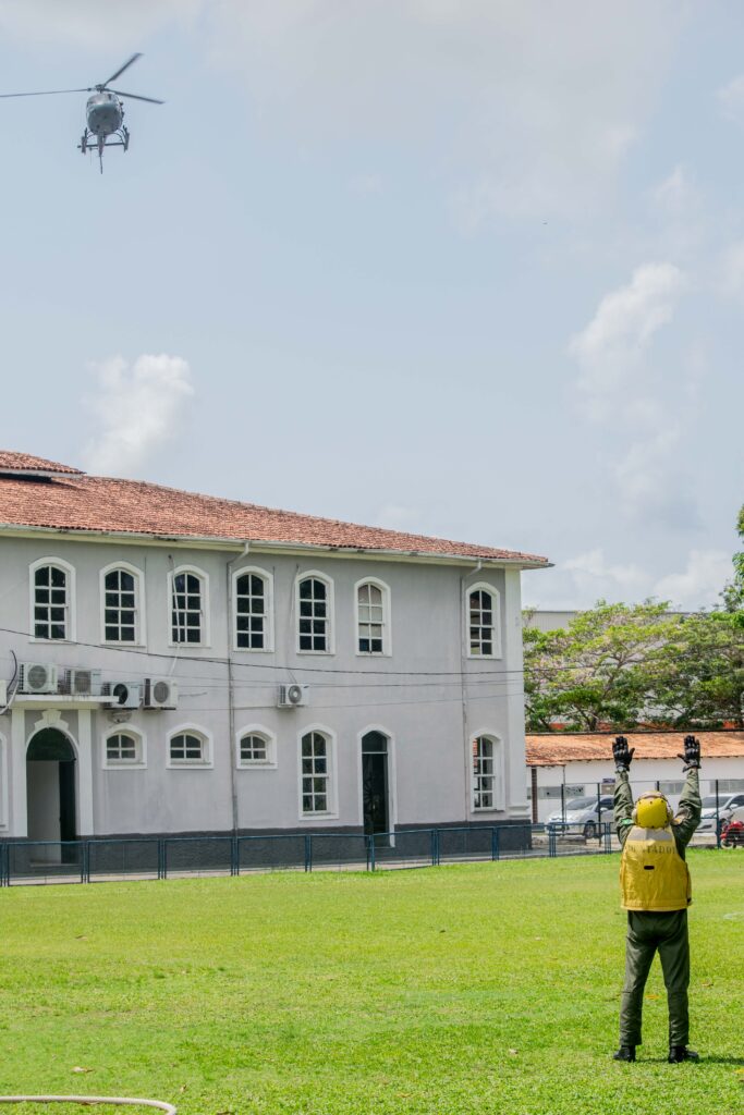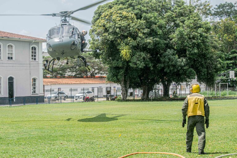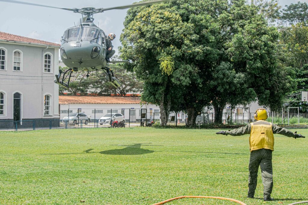 A aeronave UH-12 “Esquilo”, do Primeiro Esquadrão de Helicópteros Emprego Geral (EsqdHU-1), pousou na área do 4º Distrito Naval, em Belém (PA), nas imediações do Hospital Naval de Belém (HNBe). A instalação de saúde serve como um ponto de Apoio Logístico do Comando Conjunto “Marajoara”, coordenado pelo Ministério da Defesa, durante a 30ª Conferência das Nações Unidas sobre as Mudanças Climáticas (COP 30).
